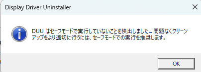 「DDUはセーフモードで実行していないことを検出しました…」 という案内です。