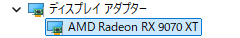 デバイスマネージャーを見ると、「AMD Radeon RX 9070 XT」に変わっていました。