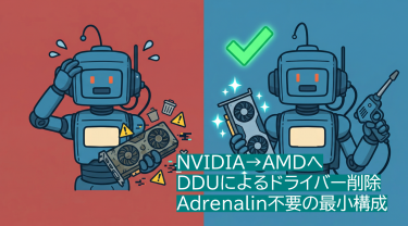 今回は、NVIDIAからRadeonへのグラフィックボード換装に伴い、DDUを用いた旧ドライバーの完全削除と、デバイスマネージャー経由での手動抽出インストールを実施しました。