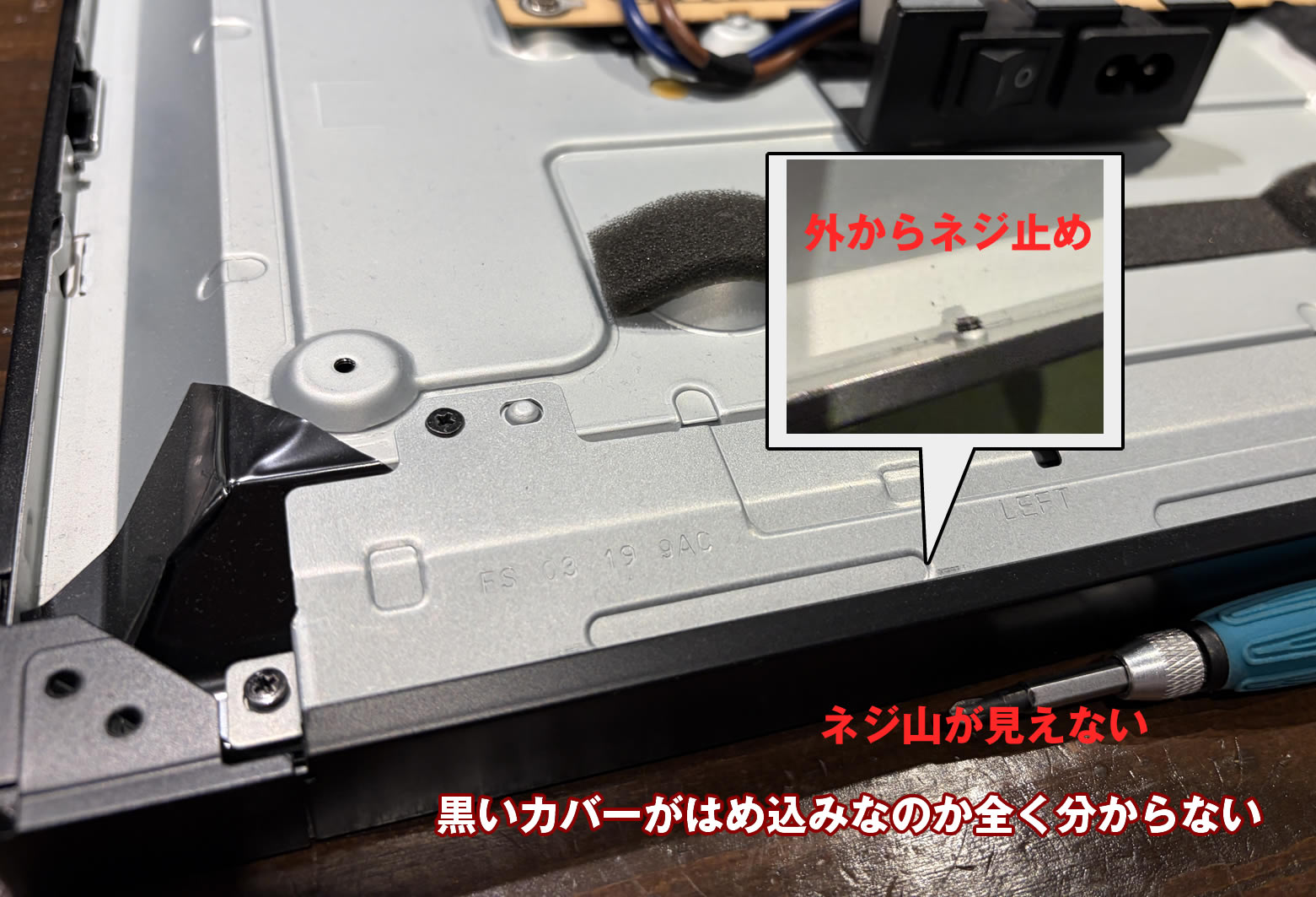 この液晶、側面を固定しているはずのネジ頭が見当たらないのです。