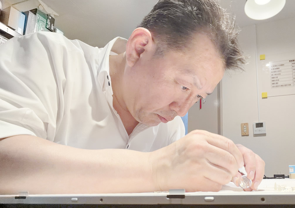 外れてしまったレンズは、ひとつずつ丁寧に接着剤で貼り付けていきます。